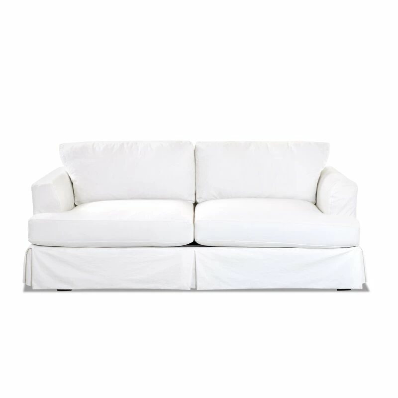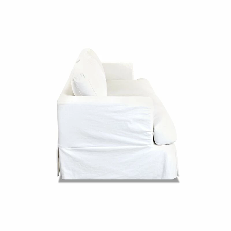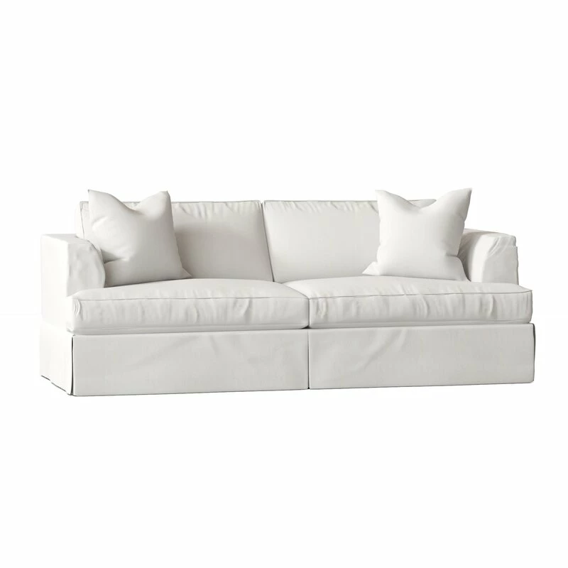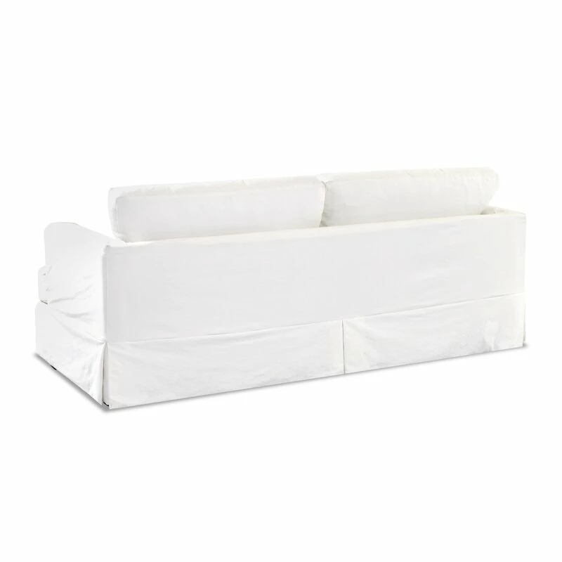 A small-space gem. This petite sleeper sofa folds out, revealing a queen-sized mattress that’s perfect for overnight guests (and those mid-day nappers too). We love how the recessed arms and skirted base gives it a vintage-inspired vibe – while two matching toss pillows add a polished finishing touch. Plus, the cozy, down-filled cushions have removable covers for easy upkeep. Arrives fully assembled.