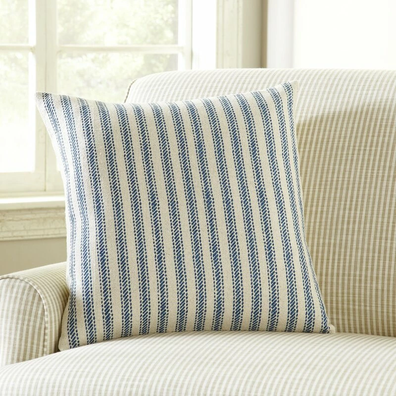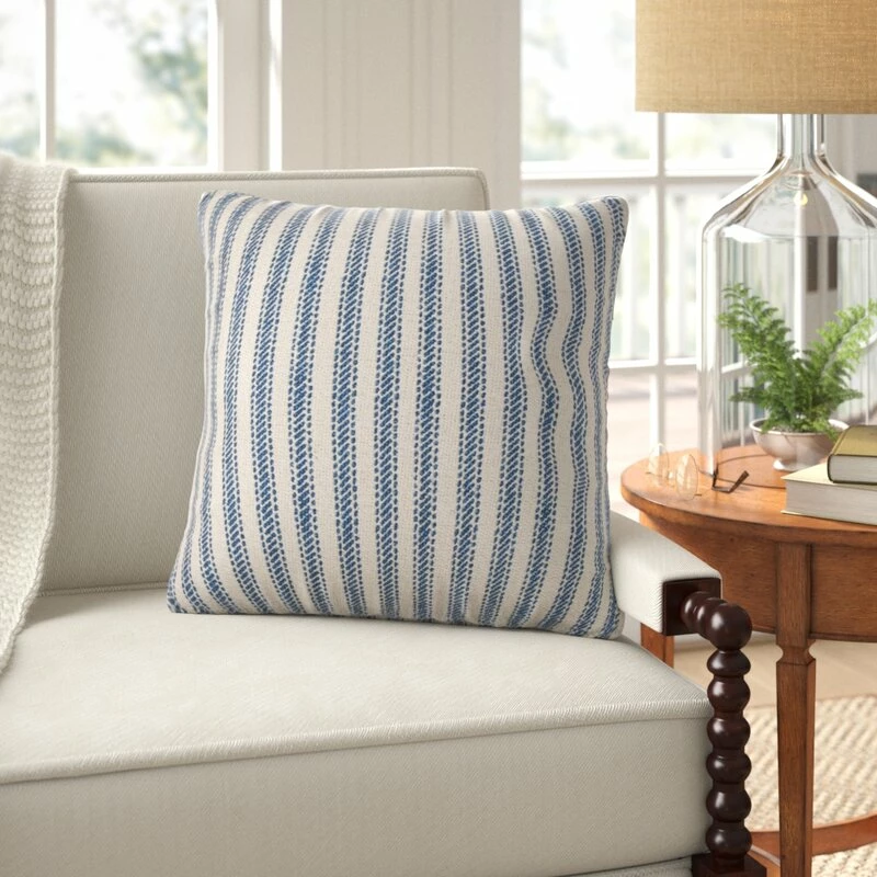 This square throw pillow cover has a striped pattern (in the color of your choice) that brings coastal farmhouse flair to any living room sofa or master bed. It’s made clean from 100% cotton and has a zipper closure that allows you to add the pillow insert of your choice (sold separately). And when it comes to upkeep, we recommend removing the insert and spot cleaning with a damp cloth to keep your throw pillow cover looking like new.