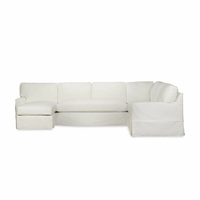 Pure comfort paired with classic design our Taylor slipcovered track arm sectional fits any living space big or small. The down-wrapped foam cushion perfectly balances with a relaxed seating experience. Designed with comfort in mind all touchpoints are graciously padded with high-quality foam. Our Taylor slipcovered track arm sectional is handcrafted by skilled craftsmen in North Carolina using quality materials assembled with kiln-dried hardwoods and mortise and tenon joinery.